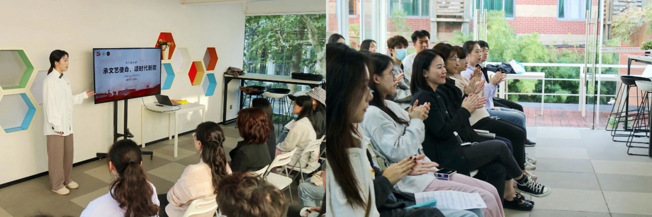 在慶祝中華人民共和國成立75周年、上海師范大學建校70周年之際,音樂學院園區(qū)黨建活動室迎來了第一節(jié)音樂微黨課《承文藝使命,頌時代新歌》,由2024級研究生黨支部黨員胡悅擔任主講。
