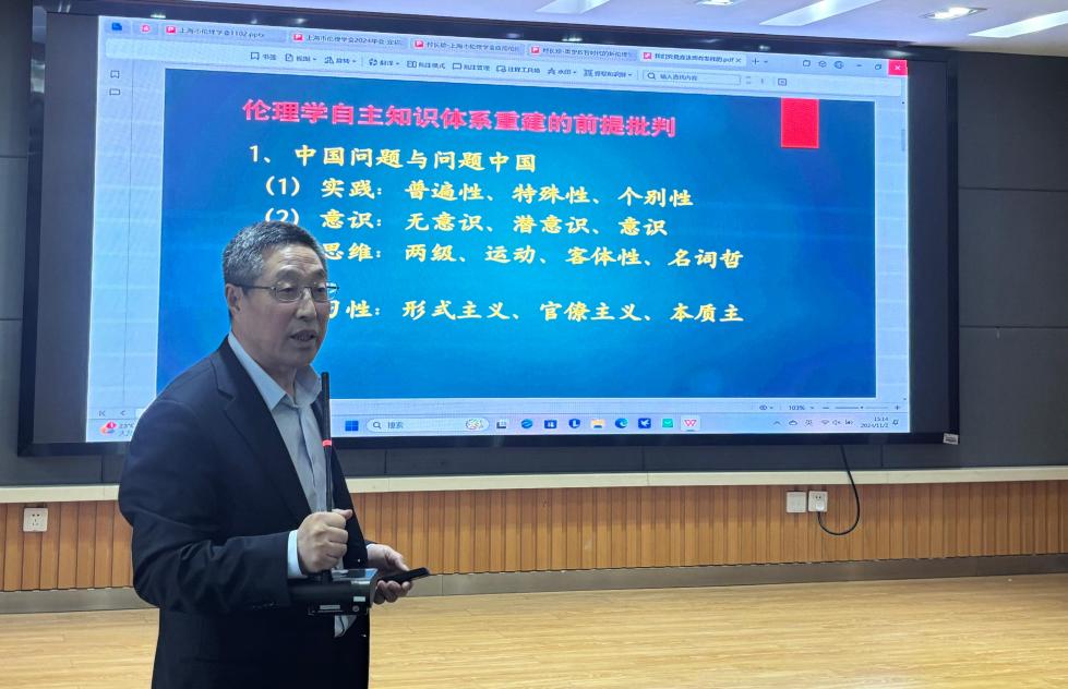 11月2日下午,由我校哲學與法政學院主辦的“當代社會治理難題與應用倫理建設——上海市倫理學會2024學術年會”在東部文科實驗樓502室召開。來自我校及華東師范大學、同濟大學、復旦大學、上海交通大學、華東政法大學、上海財經大學、中國人民解放軍國防大學政治學院、上海體育大學、上海海關學院等單位的專家學者齊聚一堂,共同探討當代社會倫理問題。