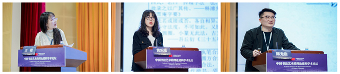 第一組圍繞“書法藝術的哲學闡釋”展開。中國美術學院陳量、江西師范大學周敏、中山大學謝佩霖、上海師范大學王博、南通大學楊天奇分別作論述陳述;第二組圍繞“書法史的理論觀照”展開。首都師范大學王聰、華東師范大學黃樂瑤、中國傳媒大學陳光浩、暨南大學孟安康、曲阜師范大學韓洋分別作論文陳述;第三組圍繞“書法認識論與現代視域”深入探討。聊城大學張函、四川大學彭再生、四川美院孫愷吉、中山大學孫晨芙、山西大學何啟分別展開陳述。