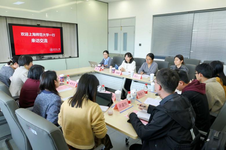 臧艷雯對東華大學外語學院的熱情接待表示誠摯的感謝并介紹了上海師范大學外國語學院整體情況。上海師范大學幸福職業發展工作室主持人馬燕婷分享了職業生涯規劃與就業指導工作的經驗,介紹了學校以職業生涯教育體系為特色,注重知行合一,在“知”的層面,開展就業指導必修課與生涯規劃選修課;在“行”的層面,舉辦金色系列、走近系列、職系列、人生導師沙龍、職業訓練營等豐富多彩的生涯發展教育實踐活動。此外,她還介紹了幸福職業發展工作室的工作開展情況,強調要深化學生主體地位,遵循教育成長規律,打造就業育人共同體,以育人品牌活動為載體,搭建“小舞臺”錘煉“大本領”。