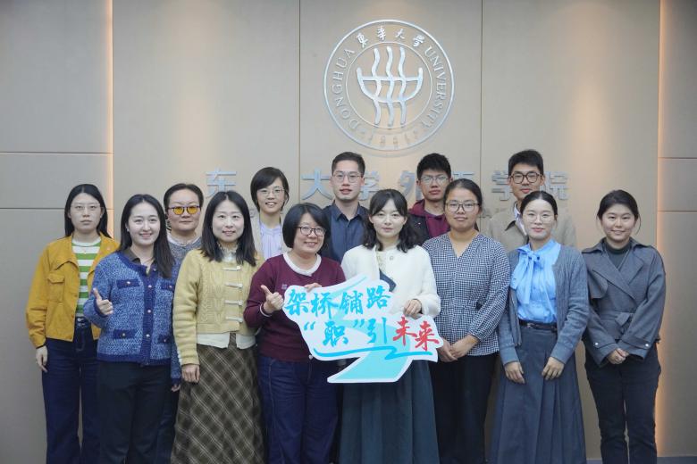 為增強大學生職業生涯規劃與就業指導工作實效性,深入交流學生職業生涯規劃與就業指導工作經驗,進一步加強輔導員隊伍建設,11月8日,外國語學院黨委副書記兼副院長臧艷雯及學院專兼職輔導員團隊、校幸福職業發展工作室主持人馬燕婷及工作室成員赴東華大學外語學院調研交流。東華大學外語學院黨委副書記鄧珊珊及輔導員團隊出席座談交流會。