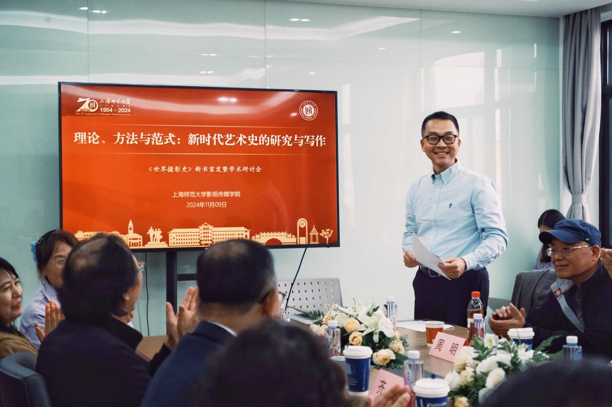 11月9日下午,由我校影視傳媒學院主辦的“理論、方法與范式:新時代藝術史的研究與寫作”——《世界攝影史》新書首發暨學術研討會在徐匯校區東部四教文馨樓5樓會議室召開。我校影視傳媒學院院長孫寶國教授、副院長齊青教授、張華教授;西安理工大學藝術與設計學院副院長張輝教授;我校影視傳媒學院林路教授、周明教授、鄭歡教授、聶艷梅教授、周韌教授,人民郵電出版社資深編輯胡巖老師、上海工程技術大學藝術設計學院沈潔副教授、華東師范大學美術學院顧欣副教授等出席,此次研討會由我校影視傳媒學院副教授戴菲主持。