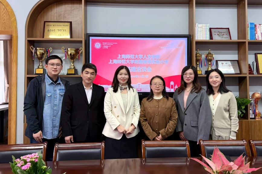 上海師范大學(xué)附屬奉賢實(shí)驗(yàn)小學(xué)黨支部書記、校長何超英對人文學(xué)院一行的到來表示誠摯歡迎,并介紹了學(xué)校目前的辦學(xué)規(guī)模、師資情況、育人理念、特色課程、發(fā)展前景等工作成效。學(xué)校黨支部副書記瞿文逸、副校長顧麗娜介紹了學(xué)校特色德育體系、學(xué)科建設(shè)需求、校園文化活動等方面的內(nèi)容。