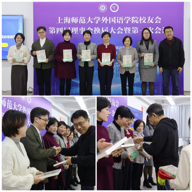 外國語學院校友會特聘顧問陸建非教授將自己在建校七十周年之際撰寫并出版的《紅樓隱翠·桂雨沁心:上海師大建筑的老故事》贈予每位校友理事,彰顯了對師大歷史文化的傳承。
