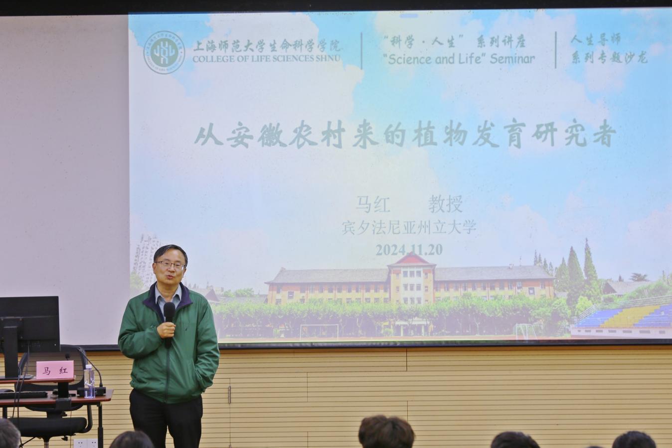 11月20日下午,生命科學(xué)學(xué)院“科學(xué)人生”系列講座第二十五講暨“人生導(dǎo)師”系列專題沙龍活動在奉賢校區(qū)2教102教室舉行。本次講座邀請到了國際著名植物分子生物學(xué)家、美國植物生物學(xué)家學(xué)會主席、賓夕法尼亞州立大學(xué)馬紅教授作為主講嘉賓,以“從安徽農(nóng)村來的植物發(fā)育研究者”為題與生科院師生開展了交流分享。生命科學(xué)學(xué)院教學(xué)指導(dǎo)委員會主任黃繼榮教授主持講座,學(xué)院師生共計260余人參與本次講座。