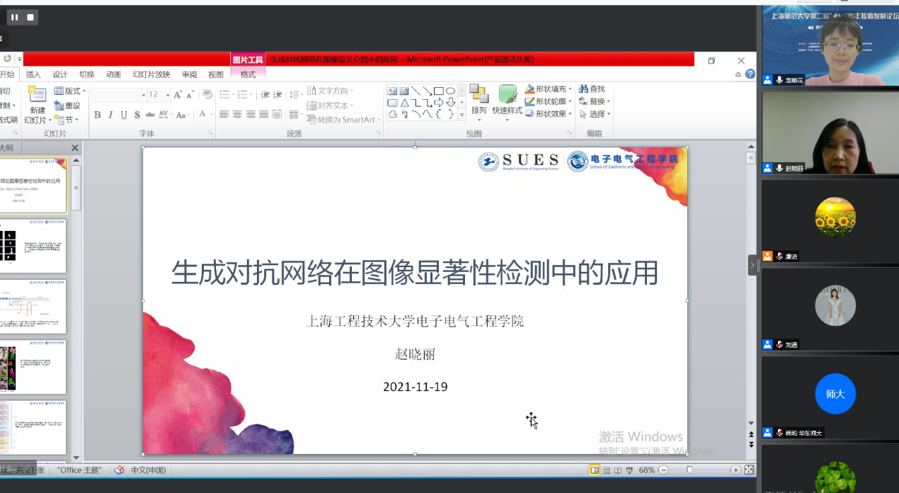 上海工程技術大學趙曉麗副教授作報告“生成對抗網絡在圖像語義分割中的應用”,介紹了改進的生成對抗網絡算法以達到圖像邊緣清晰、內部一致的圖像分割目標。