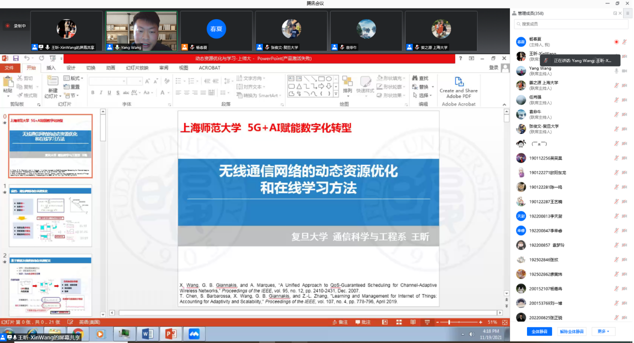 復旦大學的王昕教授作報告“無線通信網絡的動態資源優化和在線學習方法”,介紹了主動適變的資源優化配置算法機制。