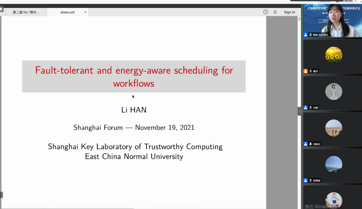 華東師范大學韓莉副教授作報告“工作流任務的容錯調度算法”,介紹了高性能計算領域現階段亟待解決的兩大難題:容錯和能耗,并提出了相應的調度算法。