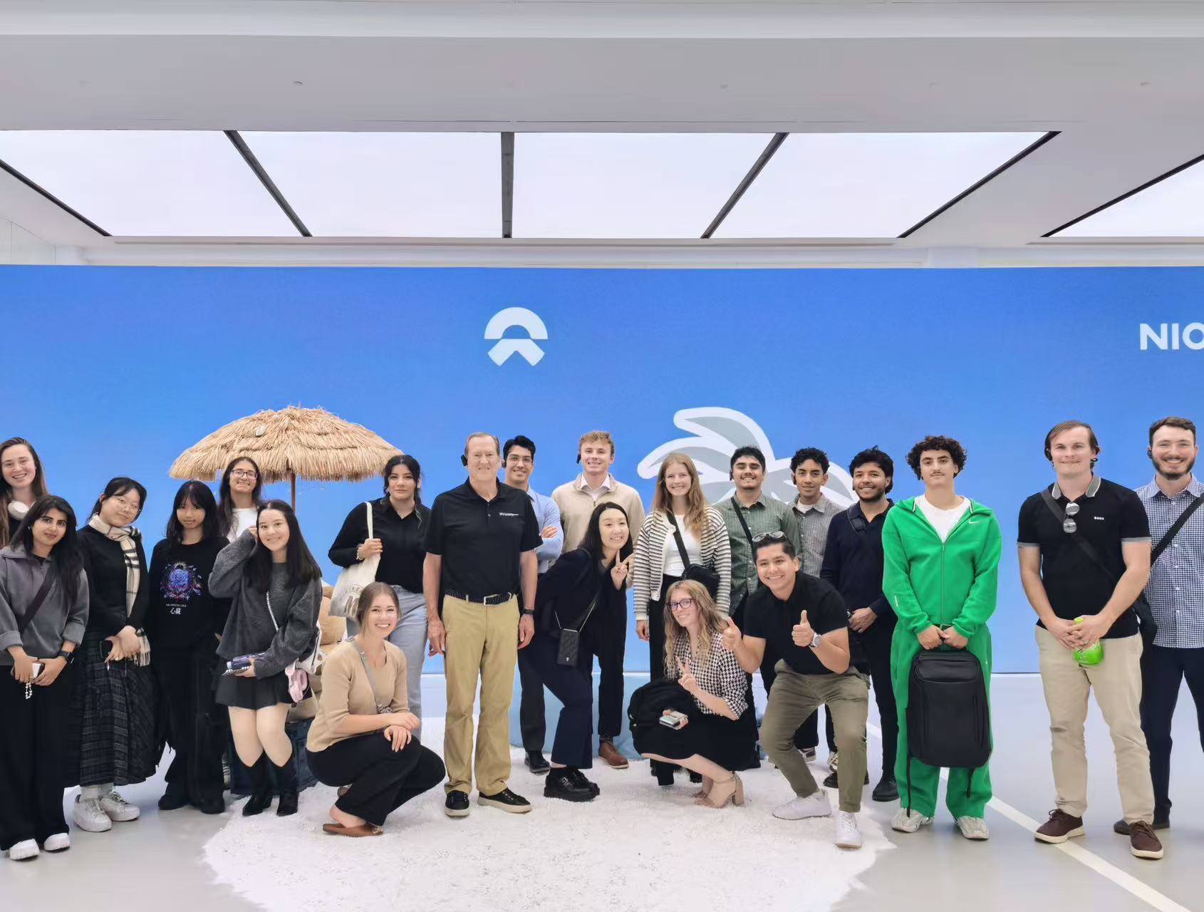 11月12日,游學團隊前往上海蔚來汽車有限公司,了解中國電動汽車產業的內部結構與最新設計理念。在公司專業工作人員的精心安排下,游學團隊得以近距離觀察蔚來系列電車的精密內部結構,從電池系統的布局到電動機的高效運作。此外工作人員還額外安排試駕環節,讓游學團隊成員親自體驗蔚來汽車的加速性能、操控穩定性以及智能駕駛輔助系統的便捷與高效。11月14日,游學團隊前往美高梅公司感受其獨特的管理理念和商業模式,就企業管理、市場營銷、人力資源等多個方面展開了熱烈的討論。此外,美高梅的高級主管特意抽出寶貴時間,與游學團隊進行深入交流,以豐富的實踐經驗與獨到的見解為美國師生們提供了建議與啟示。