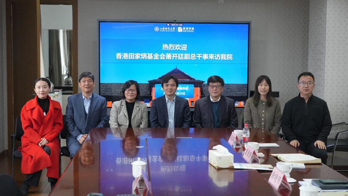 11月25日,香港田家炳基金會副總干事蕭開廷到訪我校教育學(xué)院。雙方就合作開展師范生培養(yǎng)、教師專業(yè)發(fā)展、推動滬港兩地學(xué)術(shù)交流等議題交換意見。教務(wù)處副處長楊帆,教育學(xué)院黨委書記徐曉明、院長黃海濤、副書記朱瑩,副院長閻亞軍、寧波,夏惠賢教授、蘇娜副教授等參與會談。