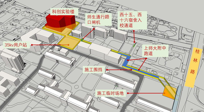 徐匯校區拓展工程建設是學校改善校區教學、生活環境的重大舉措,是一件大好事,希望廣大師生充分理解、大力支持。工程建設期間給大家帶來諸多不便,敬請諒解。你們的理解和支持是我們順利推進工程建設的重要保障,我們深表感謝!工程建設期間,如有需要溝通的事項,請及時聯系! 聯系人:陳老師,聯系電話:64323495,郵箱:chenfei@shnu.edu.cn。