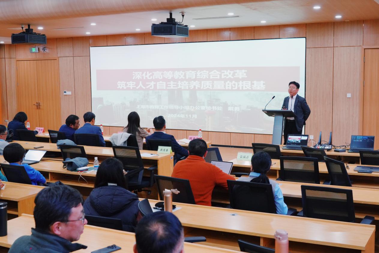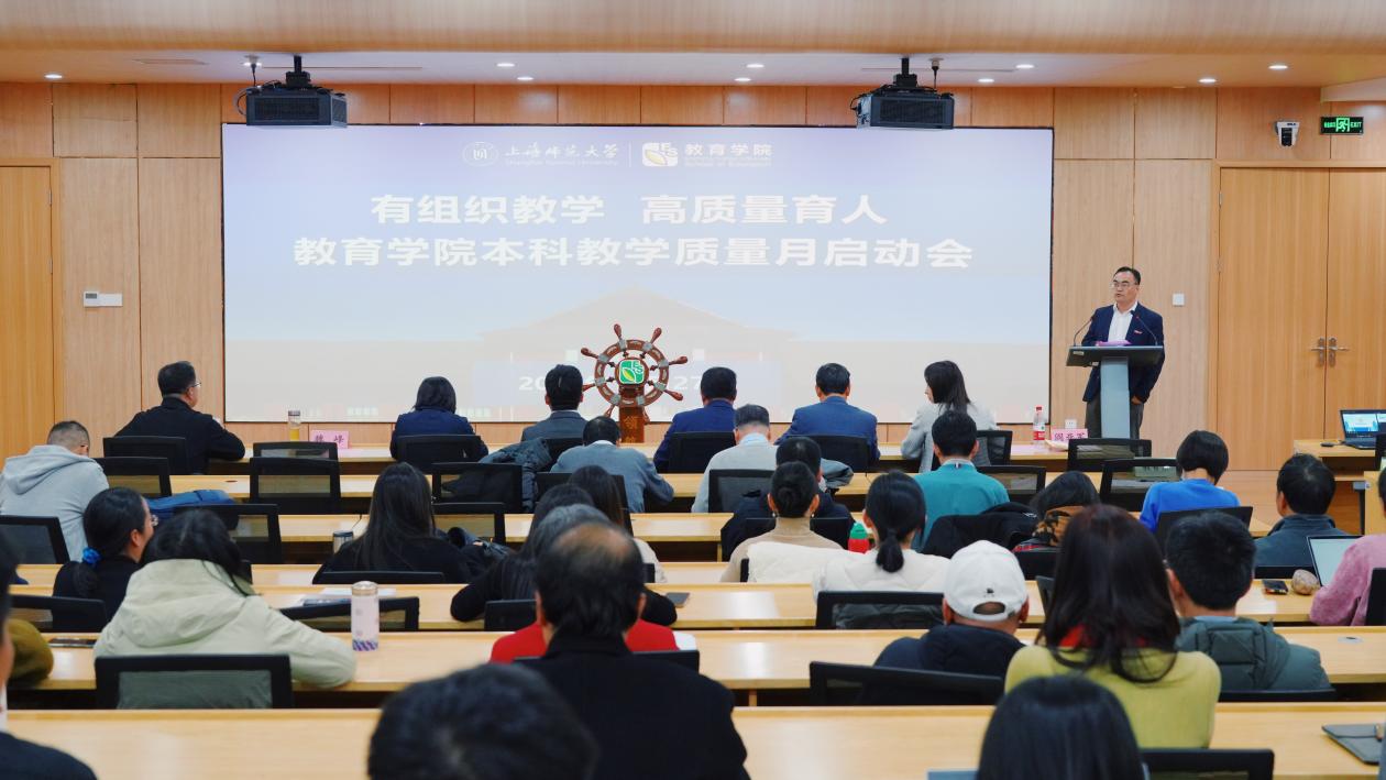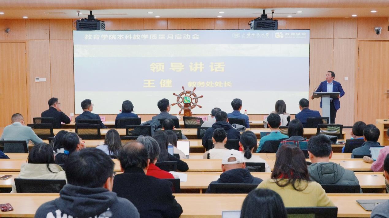 為深入貫徹全國教育大會精神,進一步深化本科教育教學改革,加強教風、學風建設,培養卓越師范生,教育學院于11月27日舉行“有組織教學 高質量育人——首屆本科教學質量月”啟動會。上海市教育委員會綜合改革辦公室副主任戴勇,上海師范大學教務處、基教處處長王健、教育學院黨政班子成員以及學院全體教職工出席。啟動儀式由教育學院副院長閻亞軍主持。