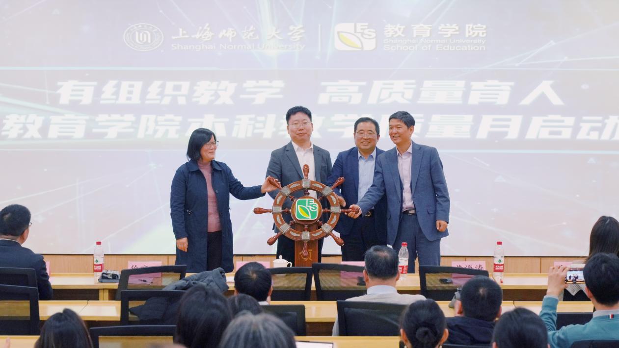 隨后,與會領導共同撥動象征著“教育”這艘大船的船舵,標志著教育學院首屆本科教學質量月的正式啟動,也預示著教育學院在教育改革和發展的新征程上乘風破浪,勇往直前。