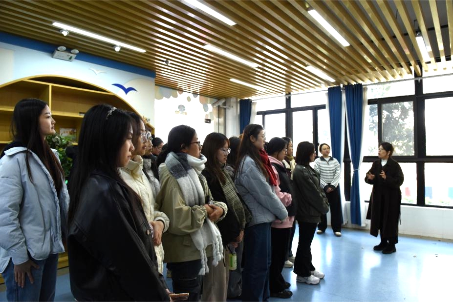 為更好地推動學(xué)前學(xué)子深入幼兒園一線教學(xué),感受幼兒園教師真實的工作場景,增強理論聯(lián)系實際能力、拓展學(xué)生就業(yè)視野,11月27日下午,學(xué)前教育學(xué)院輔導(dǎo)員徐一航與30余位本科生前往奉賢區(qū)海貝幼兒園開展了參觀學(xué)習(xí)活動。活動主要由參觀園所環(huán)境及設(shè)施、聆聽徐丹紅副園長的主題分享以及觀摩中小班集體教學(xué)活動構(gòu)成,形式豐富,內(nèi)容充實,以參觀與實踐相結(jié)合的形式讓學(xué)生們深入了解了海貝幼兒園濃厚的文化氛圍。