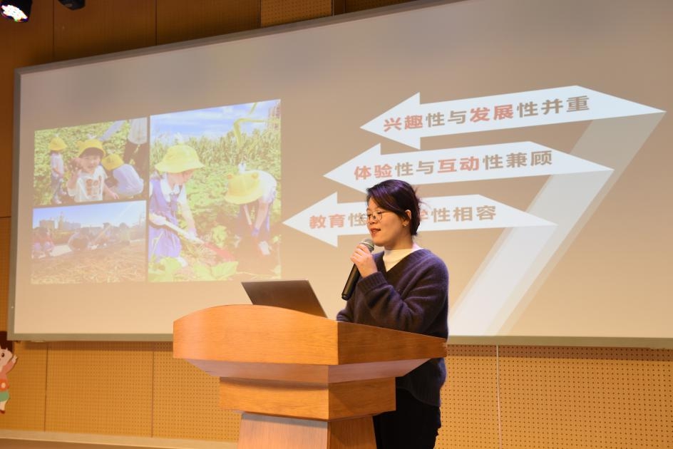 隨后,徐丹紅老師向?qū)W生們介紹了海貝幼兒園以“自然”為主題的課程設(shè)計,旨在通過課程的形式鼓勵孩子在自然中釋放天性、在游戲中享受快樂、在探究中悅動成長。園所將“親親自然活動”分為生活、游戲、運動、學(xué)習(xí)四大板塊,不同板塊下詳細設(shè)置了主題項目與自然課堂,真正做到了在實踐中激發(fā)孩子的探索欲,寓教于樂。這一課程設(shè)計也讓學(xué)前教育學(xué)院的同學(xué)們大受啟發(fā),收獲頗豐。