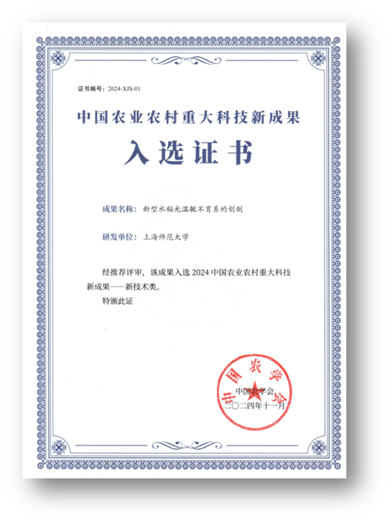 我校生命科學學院楊仲南和朱駿課題組的研究成果《新型水稻光溫敏不育系的創制》,按照《中國農業農村重大科技新成果遴選辦法》(農學(學術)發〔2023〕10號),經形式審查、網絡評審、復選、終選等環節,最終入選2024中國農業農村重大科技新成果的農學新技術成果。
