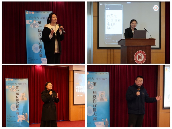 平安師大,反詐有我。此次大賽不僅增強了同學們對詐騙的防范意識,也展現了自己的才華和創意,為校園增添了濃厚的文化氛圍。希望同學們能夠繼續關注反詐騙宣傳活動,努力營造“無詐校園”的良好氛圍,構建安全穩定和諧的校園。
