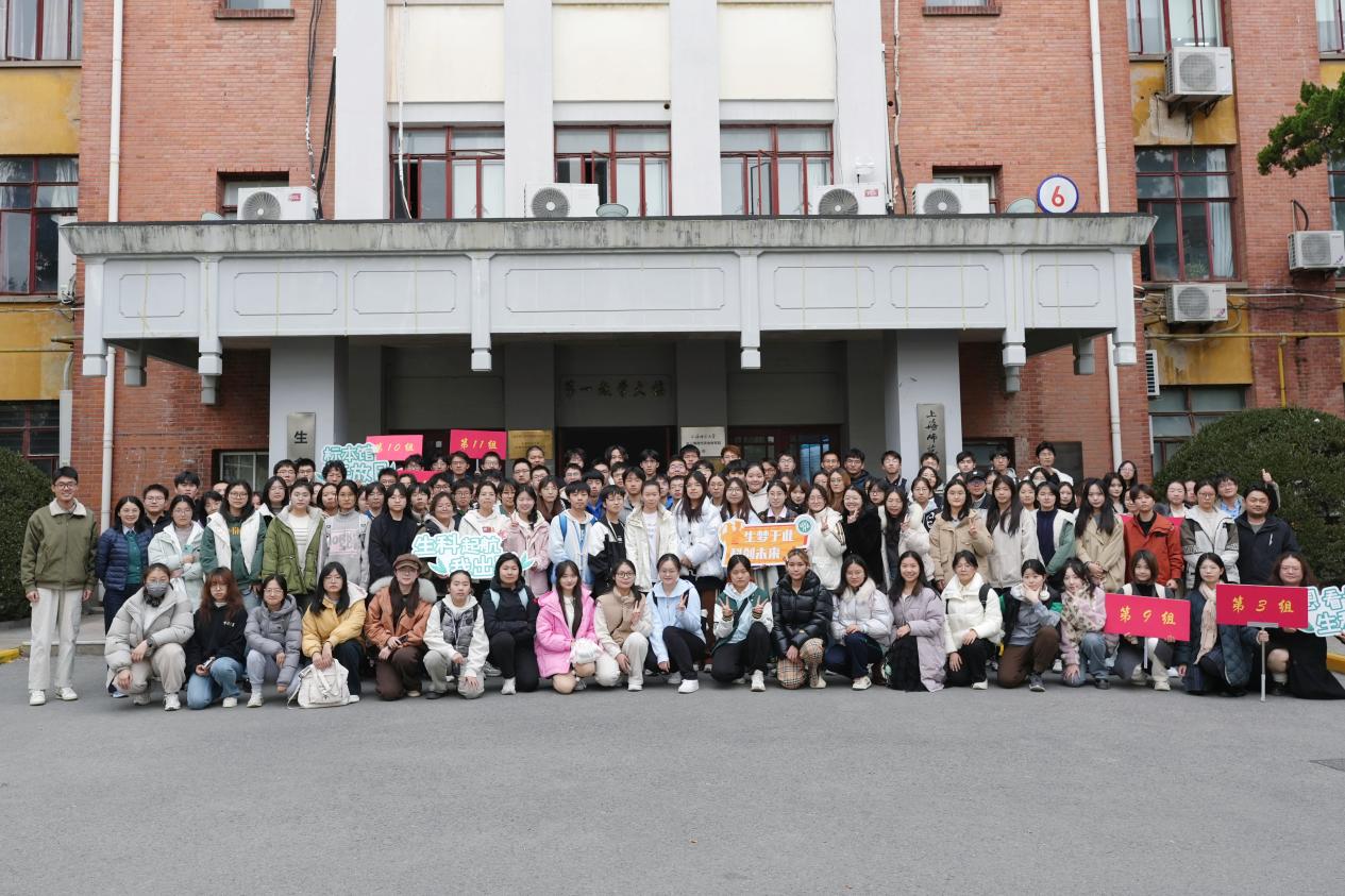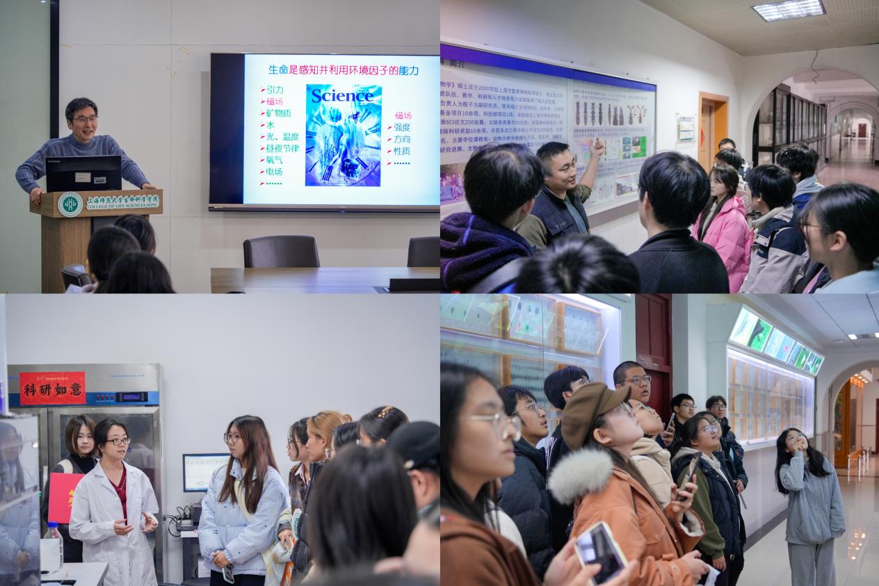 講解結(jié)束后,同學(xué)們在2023級(jí)生物科學(xué)(卓越創(chuàng)新班)學(xué)生志愿者的帶領(lǐng)下,分別參觀了各實(shí)驗(yàn)室和上海市科普教育基地——生物標(biāo)本館。參觀過程中,各實(shí)驗(yàn)室精心組織講解人員,為大家詳細(xì)講解實(shí)驗(yàn)室儀器設(shè)備和基本實(shí)驗(yàn)原理等內(nèi)容,耐心解答同學(xué)們關(guān)于實(shí)驗(yàn)內(nèi)容、設(shè)備使用方法和研究生日常生活等問題。在生物標(biāo)本館,志愿者們為同學(xué)們進(jìn)行了生動(dòng)地講解。標(biāo)本館陳列了自上世紀(jì)50年代以來所珍藏的10萬多件標(biāo)本,其中用昆蟲標(biāo)本擺成的上師大英文縮寫SHNU和建校年份1954字樣的專欄令人眼前一亮,在建校70周年之際,同學(xué)們更加體會(huì)到了學(xué)校和學(xué)院深厚的辦學(xué)底蘊(yùn)。