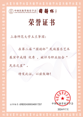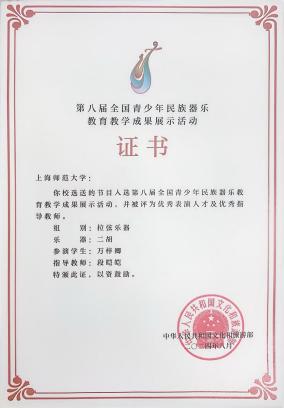 全國第七屆大學生藝術展演二等獎:上海師范大學青年民族管弦樂團