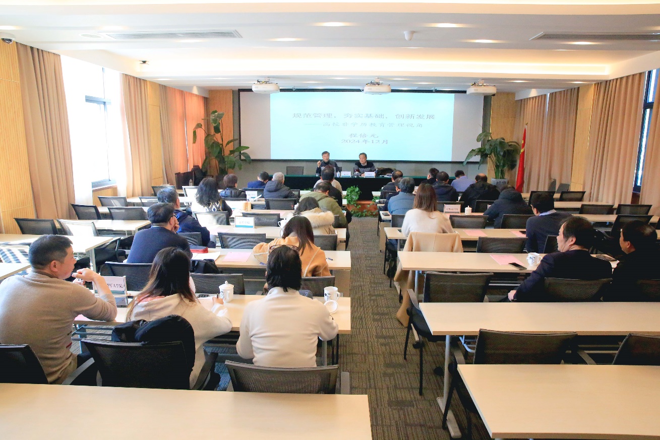 會(huì)上,繼續(xù)教育管理辦公室主任盛愛(ài)軍對(duì)學(xué)校2024年繼續(xù)教育工作總體情況做了簡(jiǎn)要總結(jié)。他首先感謝學(xué)校各職能部處和辦學(xué)單位所給予的大力支持和密切配合,基于大家共同努力,學(xué)校繼續(xù)教育工作在高校分類(lèi)評(píng)價(jià)(應(yīng)用研究型高校)中持續(xù)保持領(lǐng)先地位。隨后,盛愛(ài)軍介紹了學(xué)校非學(xué)歷教育信息化建設(shè)的最新進(jìn)展,并分別對(duì)近期學(xué)歷繼續(xù)教育和非學(xué)歷教育工作做了布置。他強(qiáng)調(diào),辦學(xué)規(guī)范和安全問(wèn)題是繼續(xù)教育高質(zhì)量發(fā)展的基本要求,各辦學(xué)單位務(wù)必高度重視,他要求各辦學(xué)單位根據(jù)本次會(huì)議的專(zhuān)家講座內(nèi)容,深入學(xué)習(xí)《上海師范大學(xué)非學(xué)歷規(guī)章制度匯編》和《上海師范大學(xué)非學(xué)歷教育十問(wèn)十答》等相關(guān)材料,并安排本部門(mén)領(lǐng)導(dǎo)班子開(kāi)展一次政策傳達(dá)與學(xué)習(xí)活動(dòng),以確保相關(guān)政策精神能夠得到有效傳達(dá)和貫徹落實(shí)。