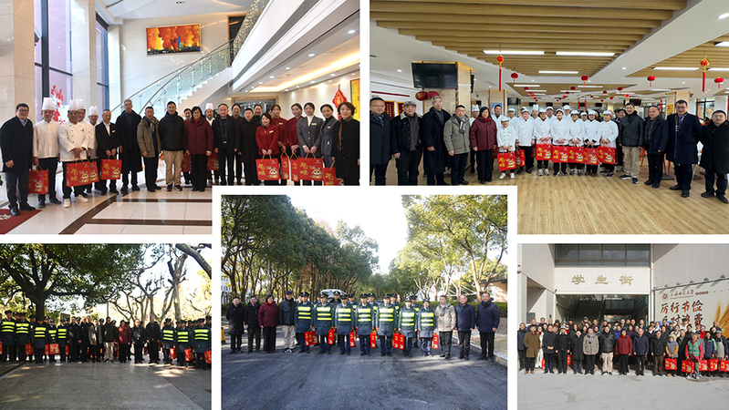 校領導林在勇、袁雯、楊海燕、朱惠軍、蔣明軍、陳恒、李曄、曹光明等與寒假留校本科生、研究生、留學生歡聚一堂,共同迎接新春佳節的到來。
