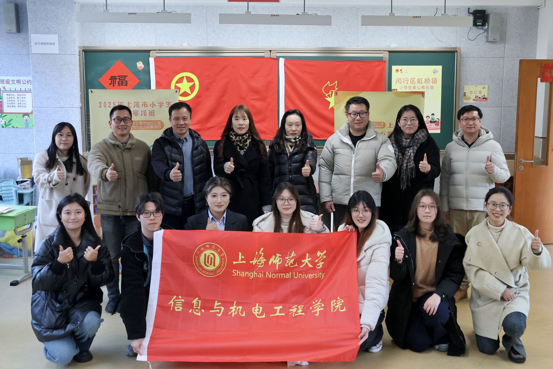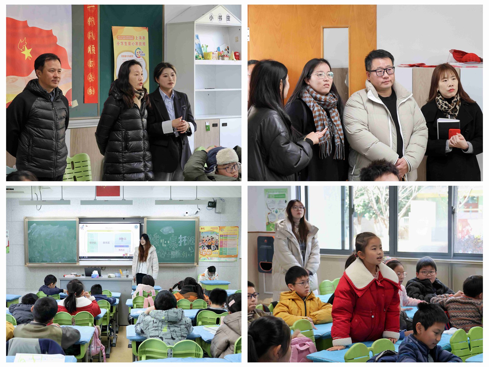 2月10日,信息與機電工程學院黨委書記陳曉虹,主持工作副院長潘建國,黨委副書記、副院長何佳,校團委副書記梁曉安帶隊赴閔行區愛心寒托班虹橋中心小學點位開展慰問交流活動。