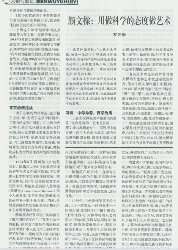 陳翰笙從事情報工作的開端是1930年,而左爾格也是在這一年開始他的情報生涯的。