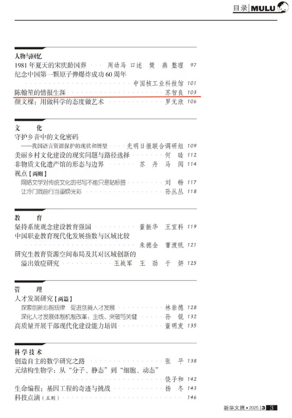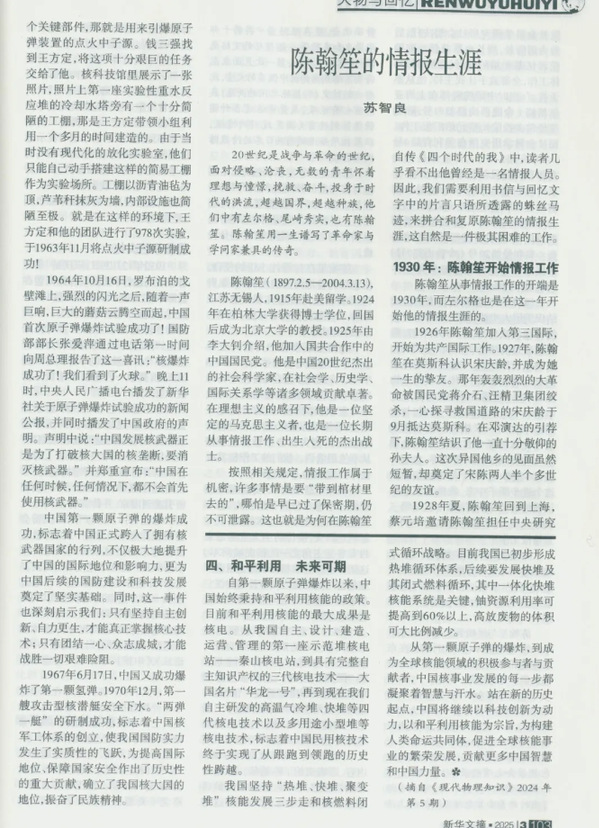 近日獲悉,《世紀》2024年第5期刊發的由上海市文史研究館館員、上海師范大學教授蘇智良先生撰寫的《從上海到東京:陳翰笙的情報生涯》一文,于2025年2月5日出版的《新華文摘》2025年第3期“人物與回憶”欄目成功轉載。