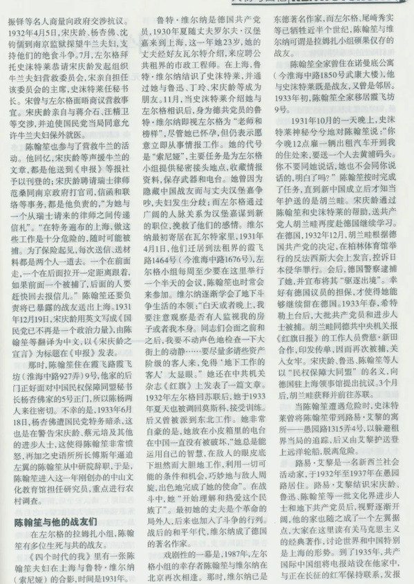 《四個時代的我》里有一張陳翰笙夫婦在上海與魯特·維爾納(索尼婭)的合影,時間是1931年。