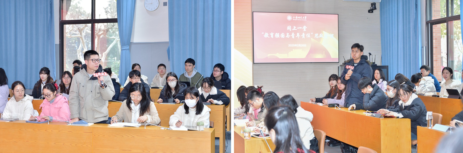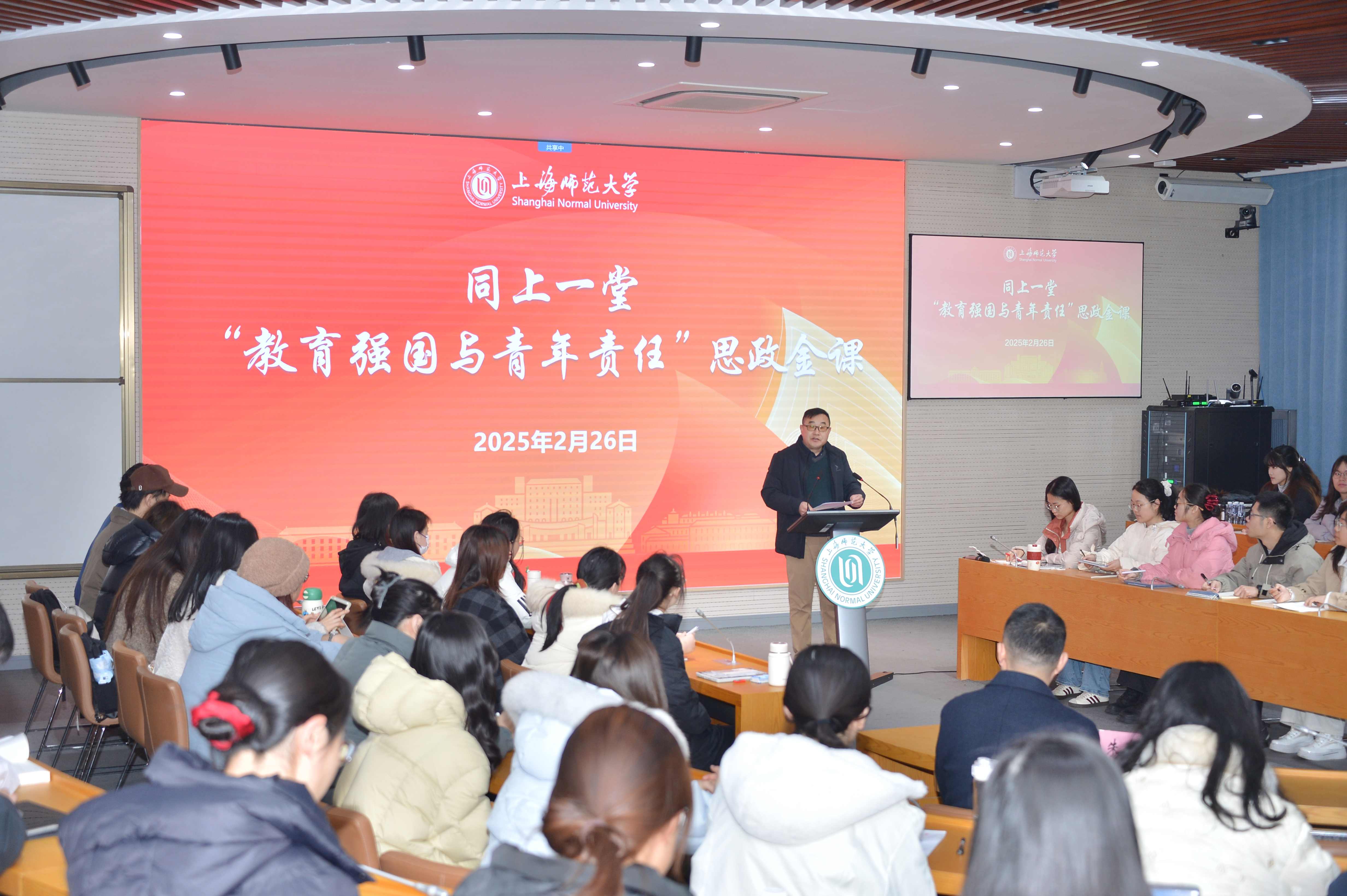 為深入貫徹落實習近平總書記關于教育的重要論述,深入貫徹落實全國教育大會精神和上海教育大會精神,2月26日學校在徐匯校區第六教學樓108室舉行“同上一堂‘教育強國與青年責任’思政金課”。校黨委書記林在勇,全國青教賽一等獎獲獎者、教育學院楊伊副教授,馬克思主義學院副院長周治華共同講授《習近平總書記關于教育的重要論述研究》個論課程,幫助青年學生領會新思想,激發新使命。人文學院學科教學(語文、歷史方向)碩士研究生、心理學院心理健康教育碩士研究生等百余名學生參加。