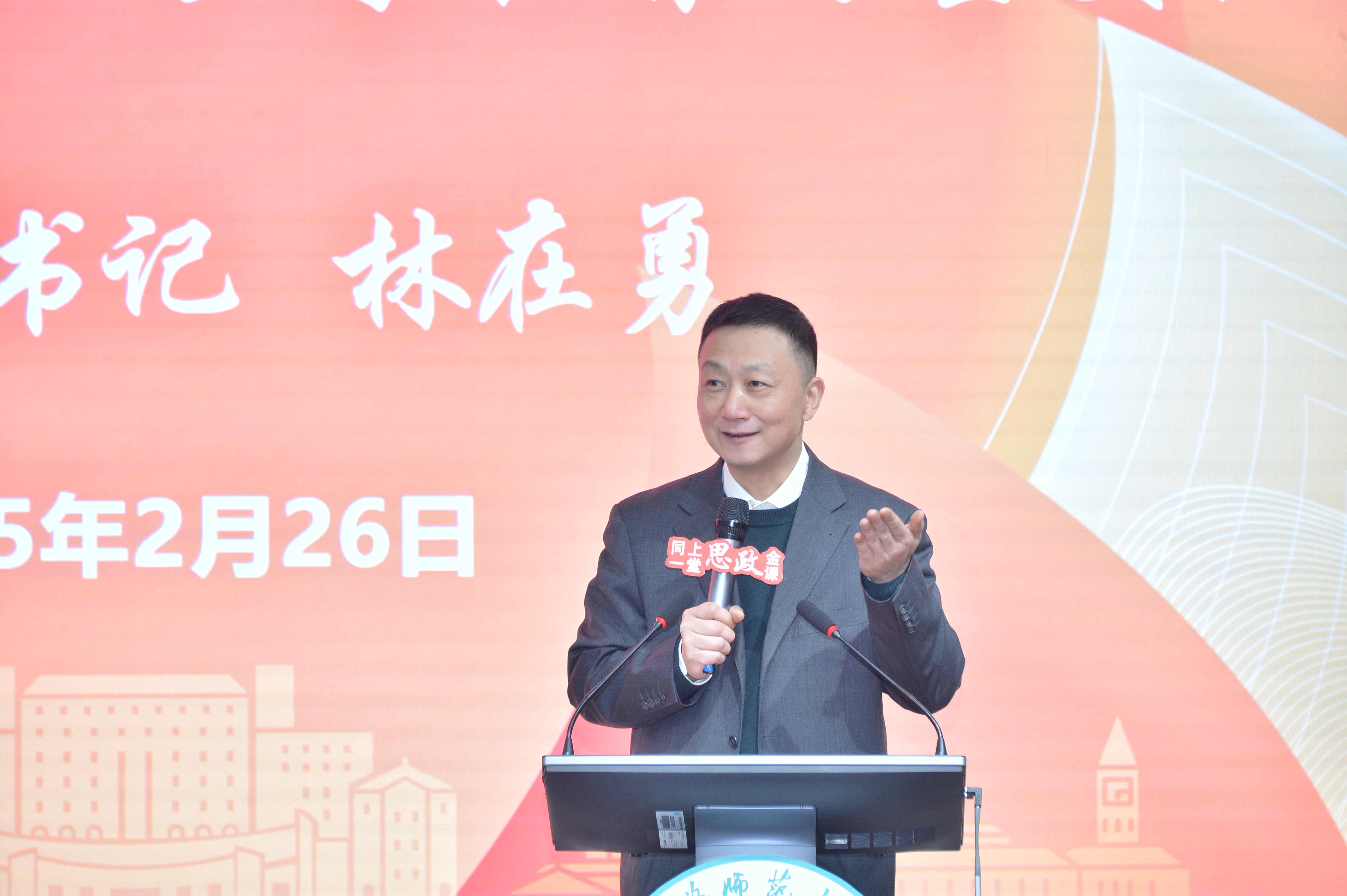 林在勇緊緊圍繞準確把握教育強國建設的時代背景和歷史使命,生動講述了習近平同志2007年考察上海師大的親切關懷和諄諄囑托,結合新時代偉大變革的生動實踐,領學了習近平總書記關于教育的重要論述。他指出,習近平總書記關于教育的重要論述是習近平新時代中國特色社會主義思想的重要組成部分。習近平總書記在全國教育大會上的重要講話,強調要堅持把立德樹人作為根本任務,堅持把服務中華民族偉大復興作為教育的重要使命。他勉勵青年學生,要進一步學深悟透習近平新時代中國特色社會主義思想,努力掌握馬克思主義的世界觀和方法論,懷揣對中華優秀傳統文化的深深眷戀與熱愛,凝聚起中華民族數千年傳承不息的文化基因與情感密碼,緊跟時代發展步伐,牢牢把握時代機遇,心懷“國之大者”,厚植家國情懷,勇擔時代責任,切實增強教育強國的使命感和責任感,努力成為擔當民族復興大任的時代新人。