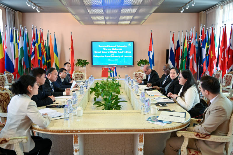 梅來迪總領事簡要回顧了中古兩國友好往來的發展歷程,特別指出今年是中古建交65周年,作為拉丁美洲首個與新中國建交的國家以及拉美地區第一批加入“一帶一路”倡議的國家之一,古巴同中國始終保持著密切的聯系。同時,古巴始終將教育視為國家發展的基石,總領館將積極推進哈瓦那大學與上海師范大學的交流與合作。