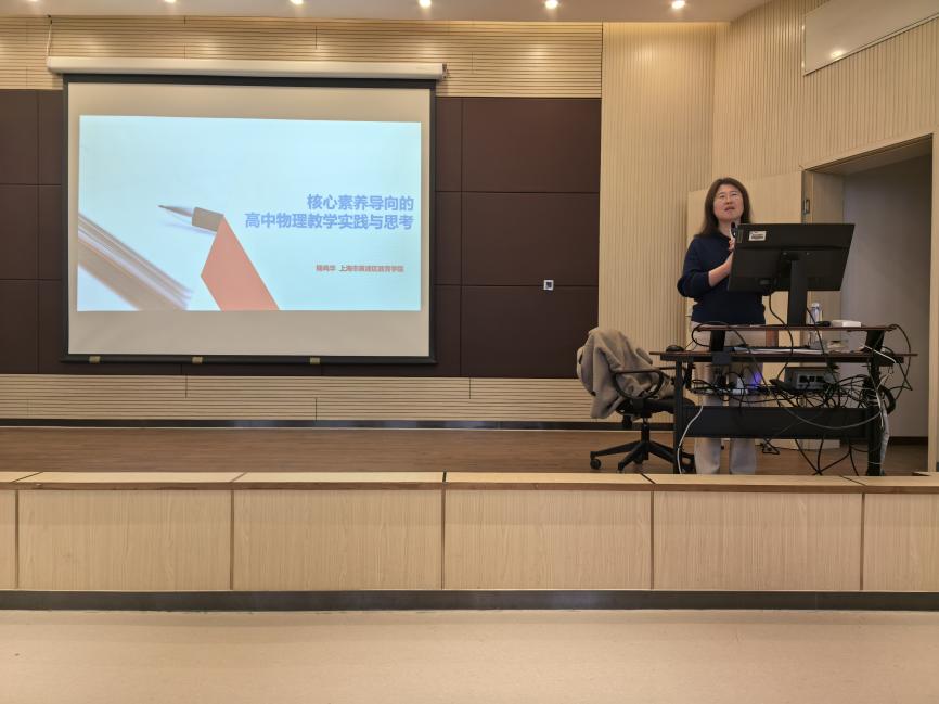 3月5日下午,數(shù)理學(xué)院在奉賢校區(qū)科技樓B座401舉行《核心素養(yǎng)導(dǎo)向的高中物理教學(xué)實(shí)踐與思考》的物理教研講座活動(dòng),2023級(jí)物理學(xué)(師范)專業(yè)全體本科生、2024級(jí)學(xué)科教學(xué)(物理)專業(yè)部分碩士生及部分研究生導(dǎo)師參加。本次講座邀請(qǐng)到了上海市黃浦區(qū)教育學(xué)院高中物理教研員、正高級(jí)教師楊鳴華老師主講,是物理教師教育·行業(yè)報(bào)告及前沿講座系列的第二十七講。