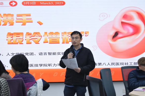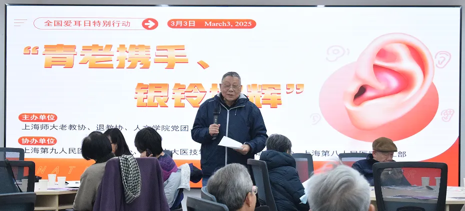 今年的3月3日是第24個全國愛耳日,由上海師范大學老教協、退教協、人文學院語言智能重點實驗室聯合主辦,上海第九人民醫院聽力中心、上海交通大學醫學院聽力與言語康復系、上海第八人民醫院社工部及“百雁”助聾關愛門診志愿服務團隊共同協辦的“青老攜手、銀鈴增輝”主題活動日前在徐匯校區人文實驗中心舉辦。校老教協、退教協秘書長兼常務副會長單冠初教授和5位副會長,以及人文、教育、外語、哲法等16個分會長、校離退休工作處副部長奚粉華、人文學院黨委副書記、副院長陳重來、副院長劉暢、院黨委委員、組織員戚靜、語言智能實驗室及老年言聽實踐創新團隊負責老師沈向榮、上海交通大學附屬第九人民醫院聽力中心主任及醫學技術學院聽力與言語康復系執行主任黃治物和九院聽力中心主管技師黃美萍、人文學院輔導員、智慧老人公益項目成員及銀鈴志愿服務隊出席了活動。