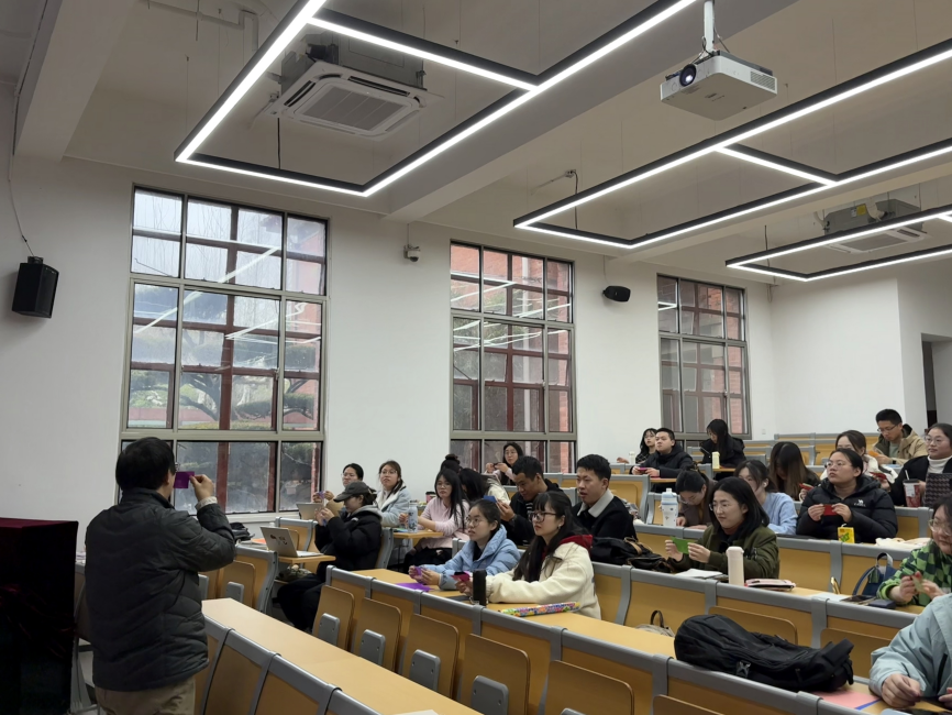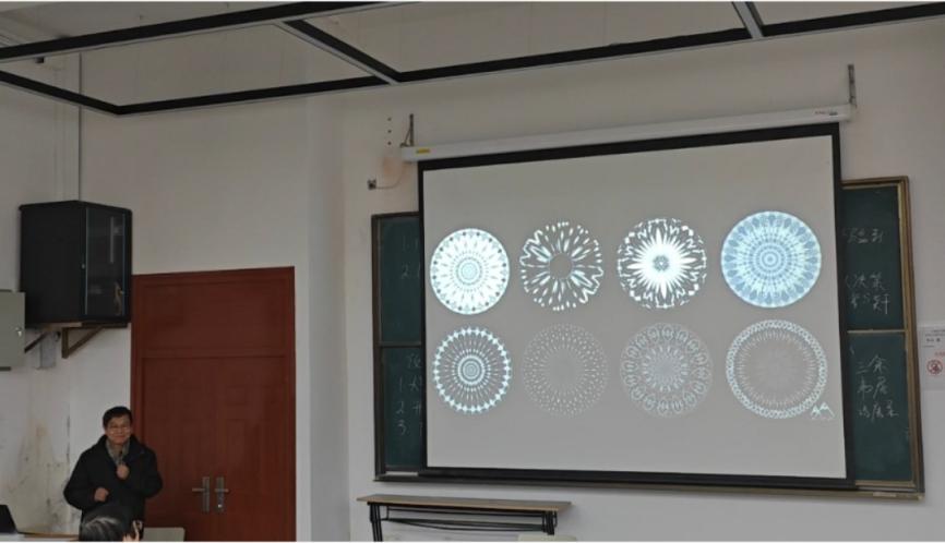 12日,同樣在一教,學院陸新生教授通過《藝數折紙》主題講座,指導數理學院師生完成牛頭、七巧板等經典折紙作品,同步解析折紙技術在航天工程、醫療領域的應用轉化,令在場師生耳目一新。