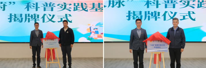活動現場,上海交通大學口腔醫學院副院長劉劍楠、第九人民醫院血管外科支部書記劉曉兵與我校哲法學院黨委副書記、副院長姚秋磊共同為“久蔚”和“久脈”科普實踐基地進行揭牌,正式開啟雙方在學科交流與教育實踐的深度合作。