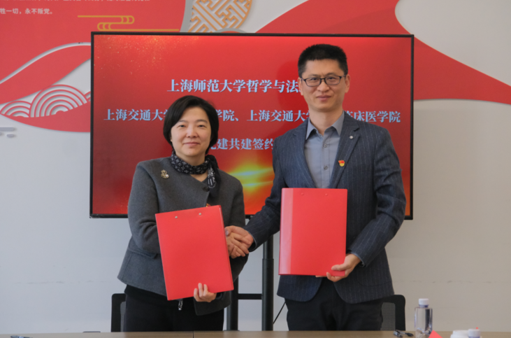 活動當天,上海師范大學哲學與法政學院與上海交通大學口腔、九院臨床醫學院進行黨建共建座談會與醫學義診等系列活動。在黨建共建座談會上,上海師范大學哲學與法政學院與上海交通大學九院臨床醫學院圍繞黨建工作創新、一站式園區建設與人才培養展開深入交流,并簽署黨建共建協議。