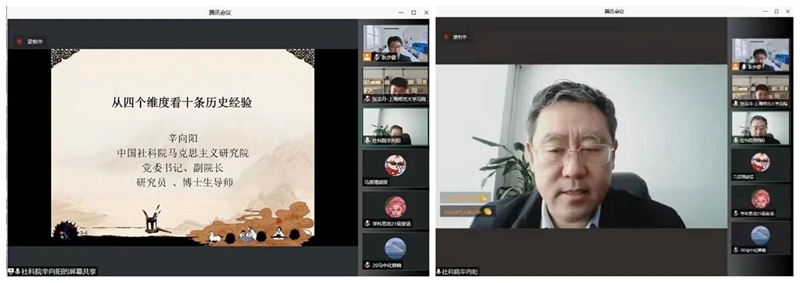 3月4日下午2點(diǎn),“思想強(qiáng)國(guó)”(名家講壇系列思政選修課)通過“騰訊會(huì)議”平臺(tái)正式開講。中國(guó)社科院馬克思主義研究院黨委書記、副院長(zhǎng)辛向陽(yáng)研究員應(yīng)邀作了題為《從四個(gè)維度看十條歷史經(jīng)驗(yàn)》的講座。此次講座由院長(zhǎng)張志丹教授主持,馬克思主義學(xué)院全體教師和馬克思主義理論學(xué)科專業(yè)、課程教學(xué)論(思政)專業(yè)、學(xué)科思政專業(yè)研一、研二全體研究生參加。