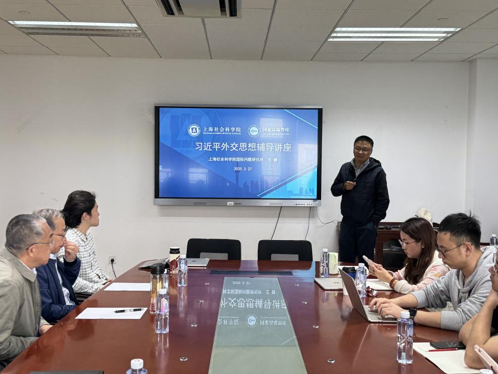 3月27日,哲學與法政學院《習近平外交思想》專論課集體備課會暨學生宣講團輔導報告在徐匯校區東部文科樓908會議室舉行。上海社會科學院國際問題研究所所長、研究員、博士生導師王健應邀做輔導培訓,哲學與法政學院習近平外交思想專論課教學團隊、學生宣講團成員及國際關系、國際政治相關專業的學生代表參加此次輔導。講座由哲法學院黨委副書記、副院長姚秋磊主持。