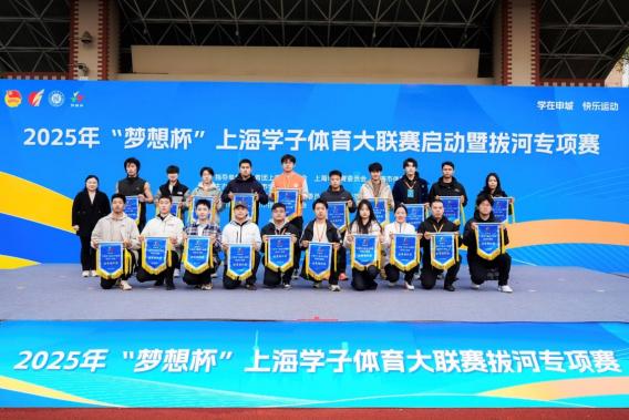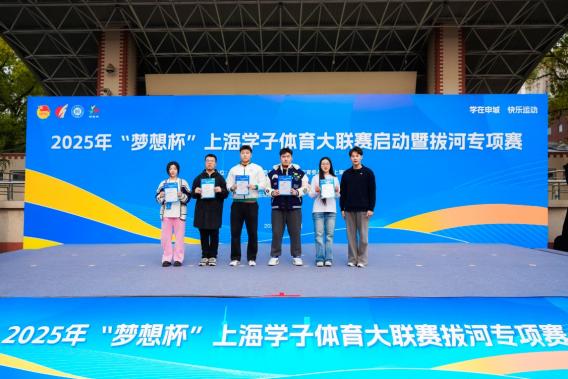 共青團(tuán)上海市委員會副書記王江出席開幕式,并宣布2025年“夢想杯”上海學(xué)子體育大聯(lián)賽啟動,拔河專項賽開幕。