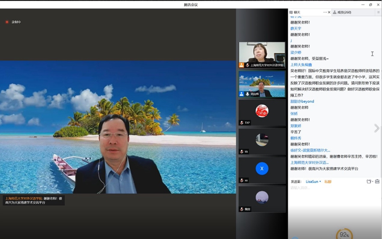 3月30日下午,北京語言大學(xué)漢語國際教育研究院、華文教育研究院(教育部人文社科重點研究基地)院長、基地主任吳應(yīng)輝教授應(yīng)邀為上海師范大學(xué)對外漢語學(xué)院師生帶來了一場題為《國際中文教育新動態(tài)、新領(lǐng)域與新方法》的專題講座。講座由對外漢語學(xué)院院長曹秀玲教授主持。講座采取線上形式進(jìn)行,吸引了校內(nèi)外眾多師生參與。
