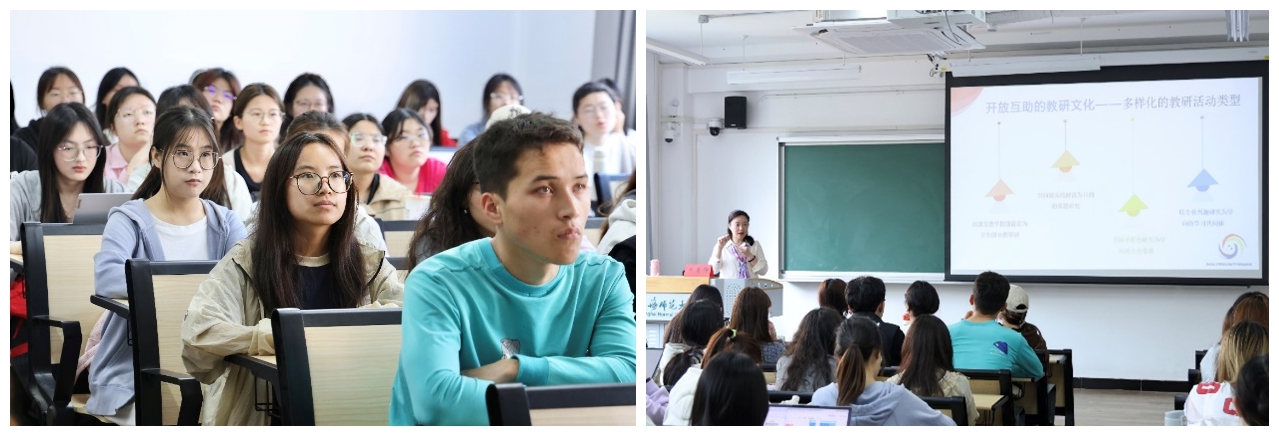 在徐匯校區(qū)東部學(xué)生生活園區(qū)思享屋,張愛蓮圍繞“新時(shí)代背景下,幼兒生命教育的創(chuàng)新與實(shí)踐”作專題分享。她從當(dāng)前就業(yè)形勢(shì)切入,指出學(xué)前教育工作者應(yīng)保持信心與定力,在教育強(qiáng)國(guó)建設(shè)的背景下分析了學(xué)前教育在國(guó)民教育體系中的奠基作用,并從政策導(dǎo)向、實(shí)踐路徑和社會(huì)意義三個(gè)維度闡述了學(xué)前教育與“教育強(qiáng)國(guó)”建設(shè)的深層聯(lián)系。面對(duì)未來的職業(yè)發(fā)展,她從生理、心理、認(rèn)知和行為四個(gè)層面為同學(xué)們提供了具體指導(dǎo),指明了努力方向。