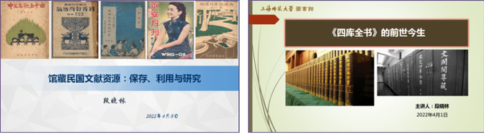 也有業務培訓和資源介紹,段曉林副館長每周五定期主講,既包括索書號取號規則、圖書云采購模式等緊密結合專業業務的培訓,也有幫助館員加深對館藏資源了解的系列講座,如館藏《四庫全書》影印叢書、民國時期文獻及中小學教材等。