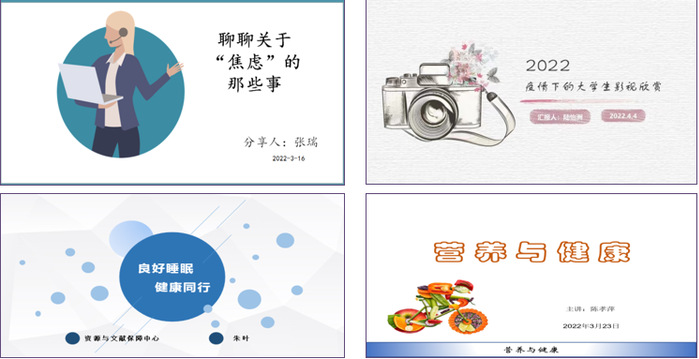 還有館員分享自己的人生感悟和生活經驗,張瑞、韋波、王岑泓分享克服焦慮、遠離舒適、勵志前行等的認識和感悟。楊眉、劉惠敏討論花卉種植,吳佳娜、朱葉介紹健康生活,托婭帶領大家學習音樂養生。另外,湯誠的非洲之行見聞、陸怡洲的疫情影視欣賞,高嵩的疫情期間物資儲備等講座讓館員頗有共鳴,討論熱烈。