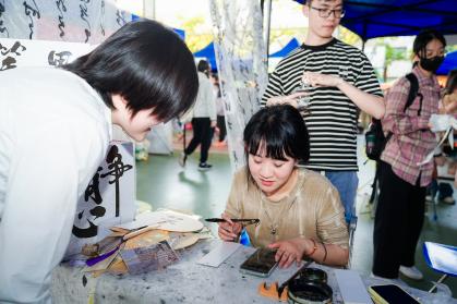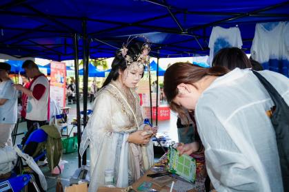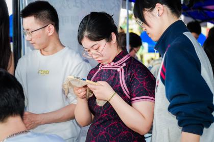 傳統文化社團體驗區,集中展示了我校傳統文化特色社團。秋石印社、易衡書社、猗蘭漢服社、德藝坊、顧繡學塾、紅薪文化社6個學生社團的特色體驗活動,用創意重新定義“破圈”——原來傳統文化可以這么“潮”!