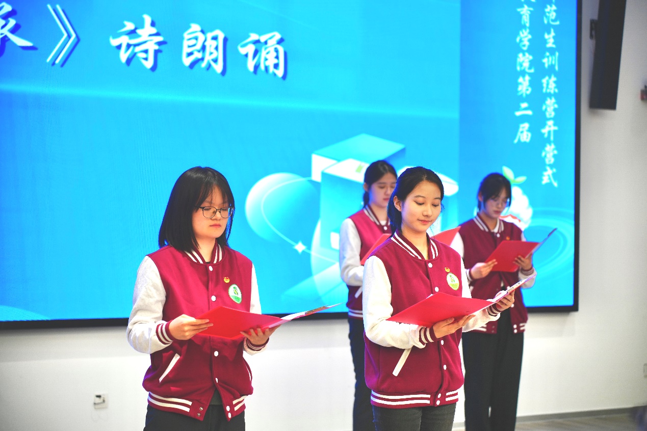 開營式上,教育學院世承學子以一首《師道傳承》的原創詩朗誦拉開序幕,學子們通過飽含深情的朗誦,再現了上海師范大學首任院長廖世承先生篳路藍縷的辦學歷程,詮釋其“立國以教”的精神內核,彰顯新時代師范生傳承教育薪火的責任擔當。