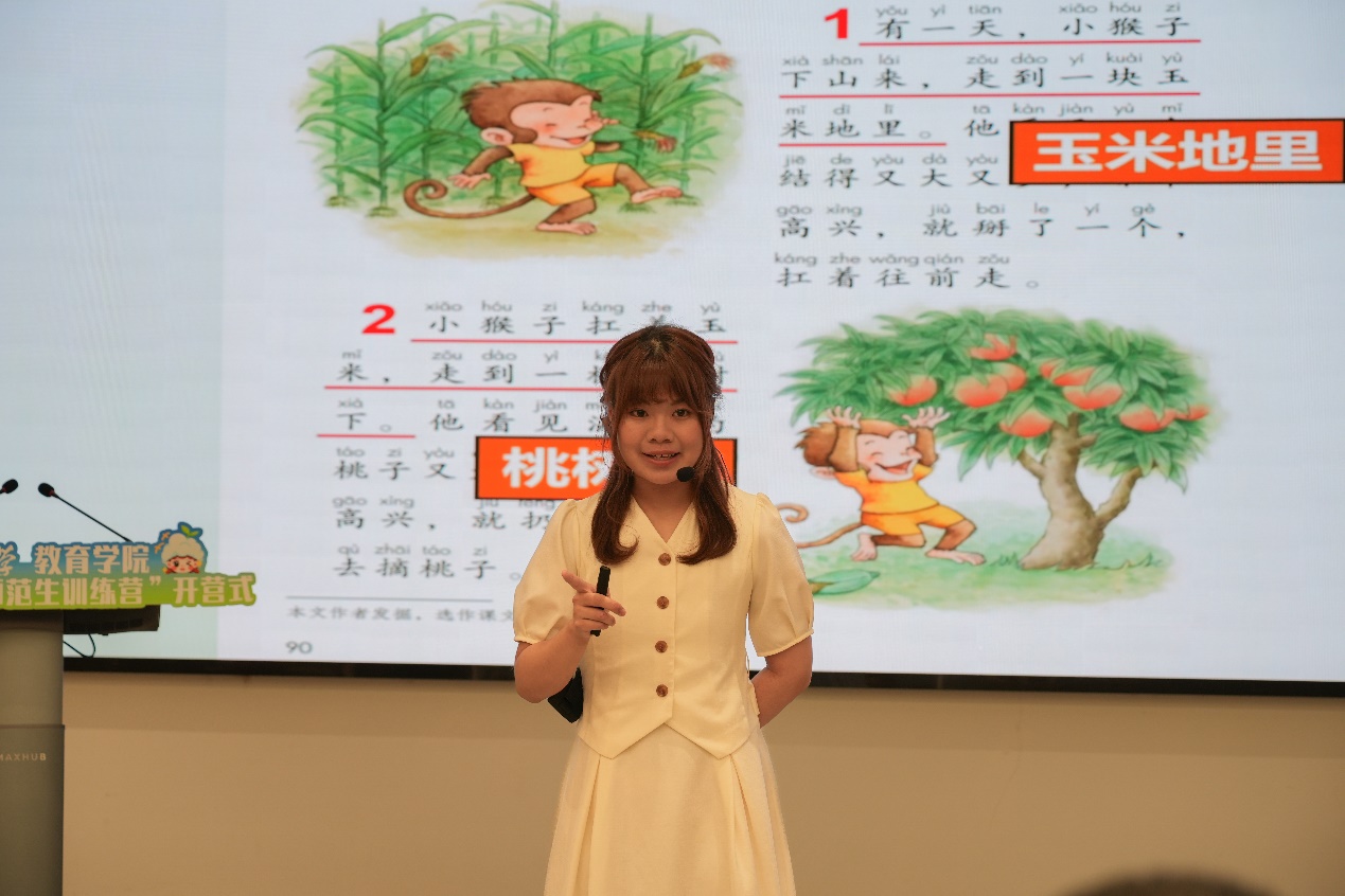 第六屆上海師范生教學基本功大賽一等獎獲獎選手,2021級小學教育文科3班學生劉瓔儀進行課堂教學展示,一堂生動的語文課《小猴子下山》充分展現未來教師的專業素養與教學風采。