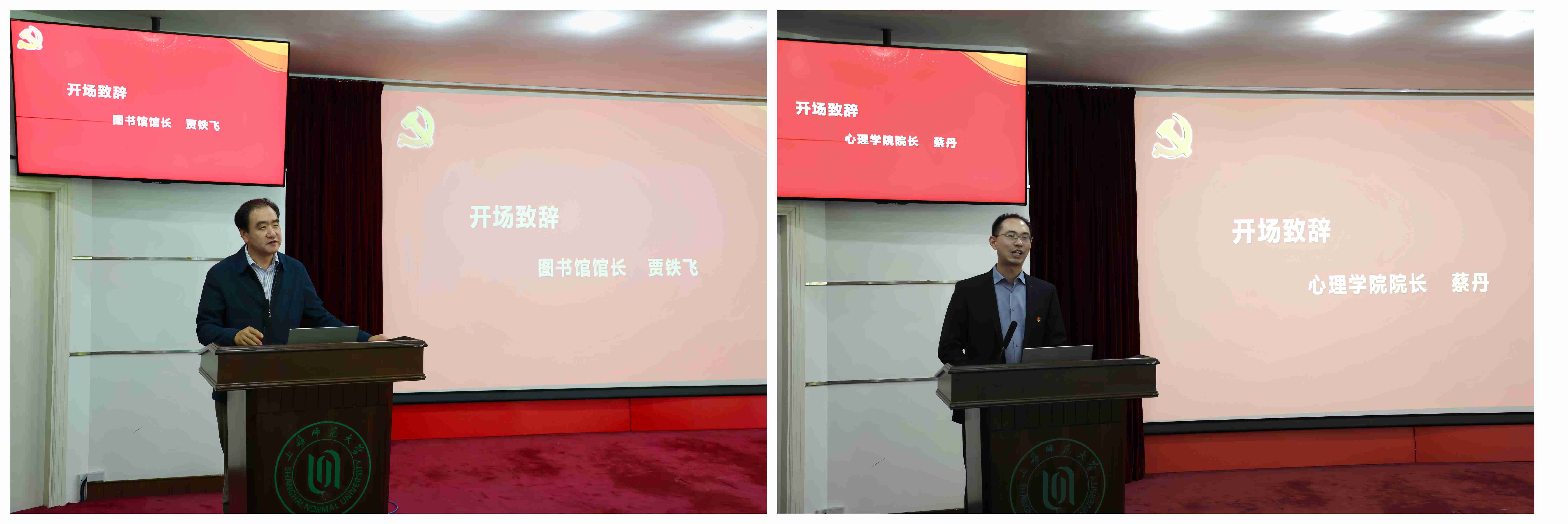 圖書館館長賈鐵飛和心理學院院長蔡丹分別作開場致辭。賈鐵飛表示,與心理學院開展聯學共建讓圖書館增強了干事創業的信心,圖書館將以此次活動為契機,深入踐行“五個貼近”:貼近人才培養,貼近學科發展,貼近專業建設,貼近科學研究,貼近文化傳承,通過增強溝通,精準對接學科需求,不斷提升服務保障能力。蔡丹感謝圖書館在資源保障與學科評價方面為心理學院學科發展作出的貢獻,他期望雙方借助聯學共建活動可以開展多方位、深入的交流,在工作中能夠更加緊密、深度地合作。二人在致辭中表達了共同的心聲,以聯學共建賦能創新發展,攜手共進,合力助推學校高水平大學建設再上臺階。