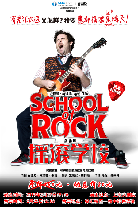 《搖滾學校》(School of Rock)是“音樂劇作曲大師”安德魯·勞埃德·韋伯2015年的新作,根據同名電影改編。作為韋伯最新力作,《搖滾學?!房诒惠斔摹秳≡瑚扔啊贰敦垺贰栋彼贰度章浯蟮馈返仍缒曜髌?。音樂劇講述了一位懷揣著搖滾夢想的廢柴大叔,假扮朋友去某私立初中當代課老師,不走套路,將一班學生打造成史上最酷最萌的搖滾樂團。