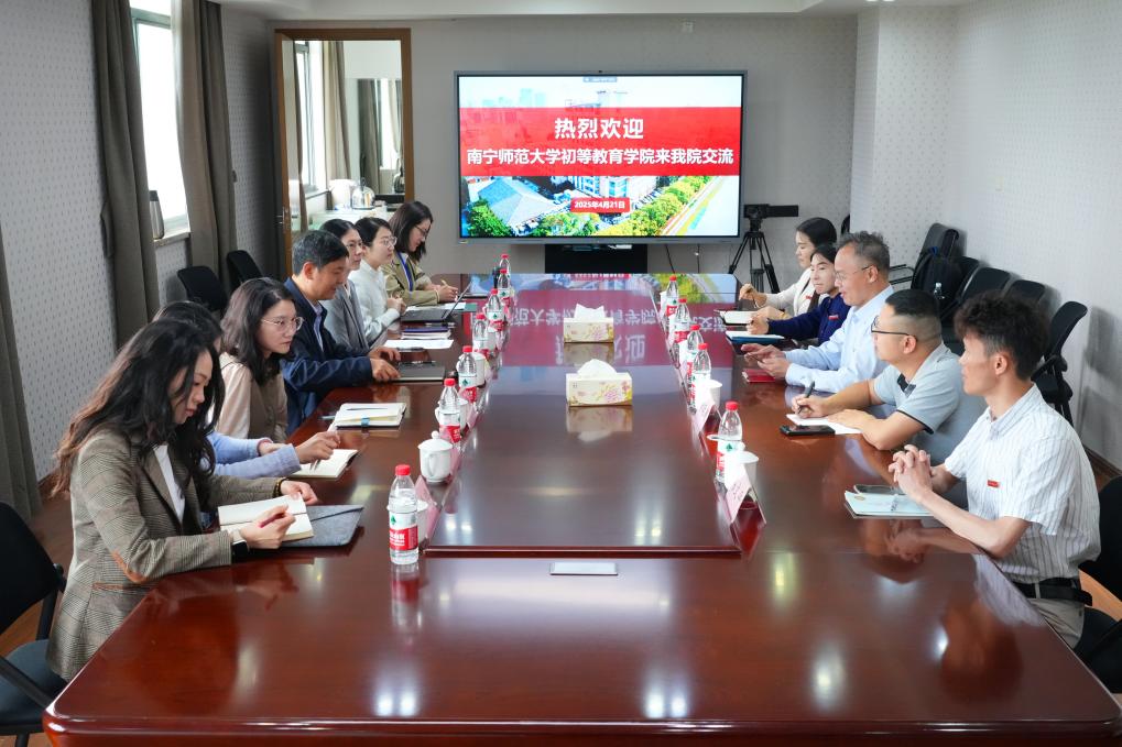 黃海濤對南寧師范大學初等教育學院一行到訪表示熱烈歡迎。他指出,在當代人工智能技術推動教育變革、少子化現象加劇等背景下,教育學科發展面臨共同的機遇和挑戰。這更需要以教育學科為主體的學院肩負起共同的使命,加強學科學術交流,互通人才培養經驗,為加快建設高質量教育體系貢獻力量。